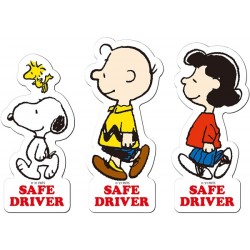 Snoopy Safe Driver Sticker is a recognition emblem that promotes safe driving practices. This sticke..